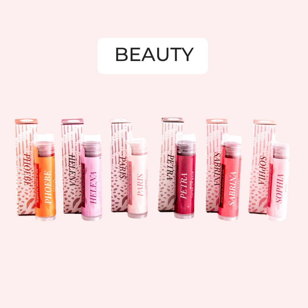 This bath & body gift set includes one SERENITY aromatherapy balm, one SOPHIA tinted lip balm, one CHERRY Roller Girl Roll On Lipgloss, one AMOURA Wonder Femme Beauty Stick, one CASHMERE Wonder Femme Lip Gloss, and a Big Pen. It's a great way to sample our ALL STAR products and get a bag to use for your ALL STAR events.